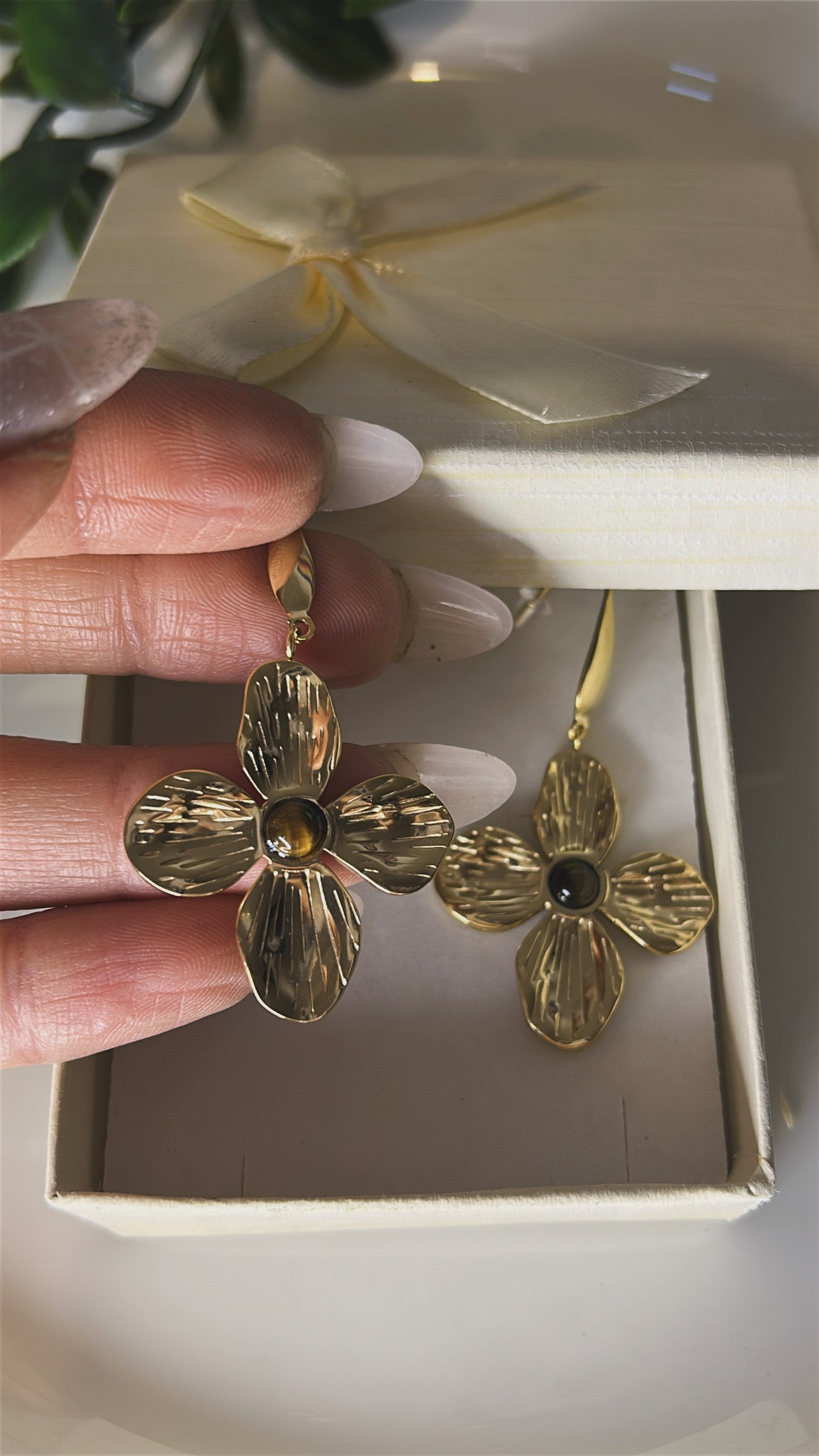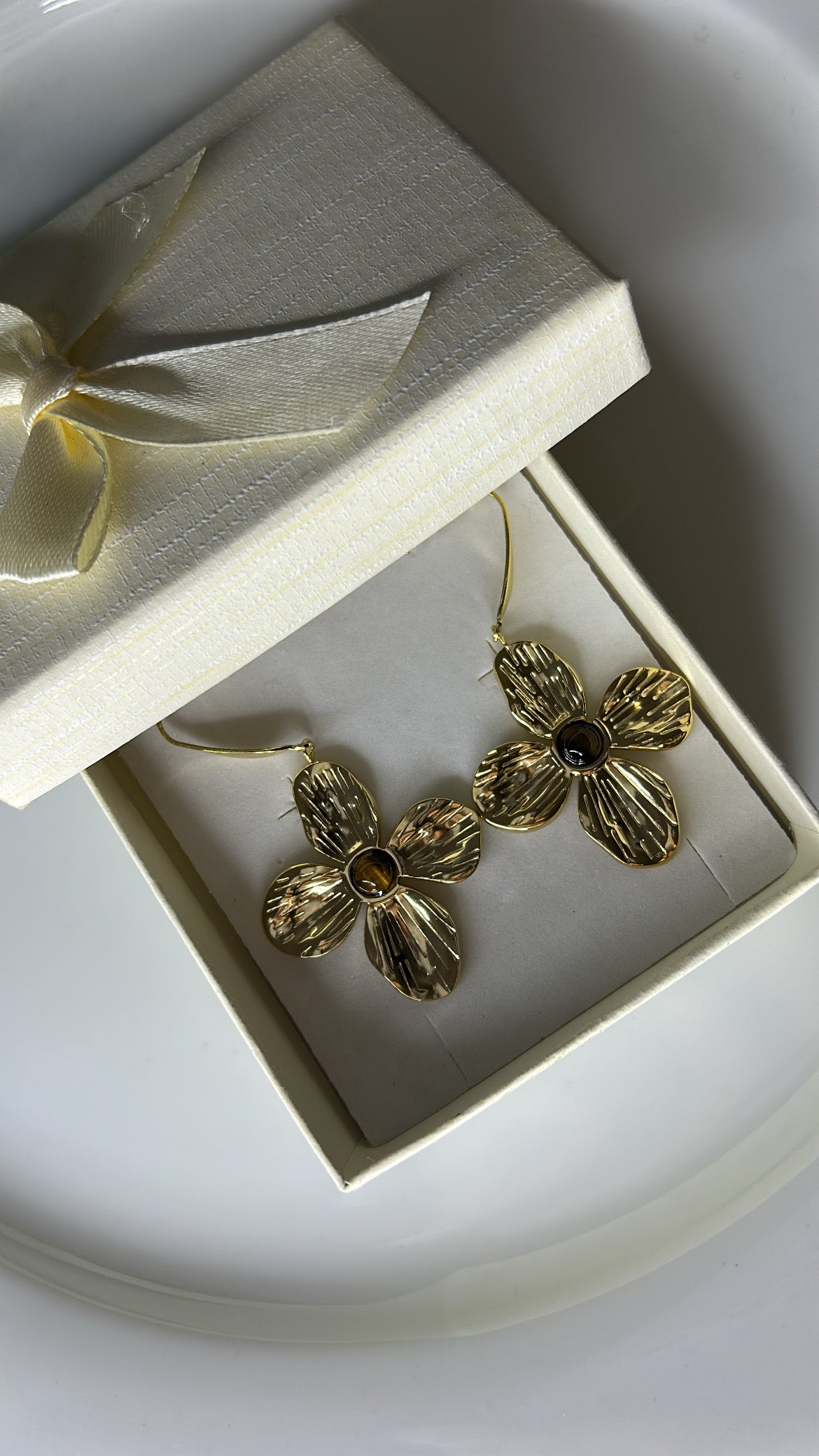Σκουλαρίκι λουλούδι με καφέ πέτρα
